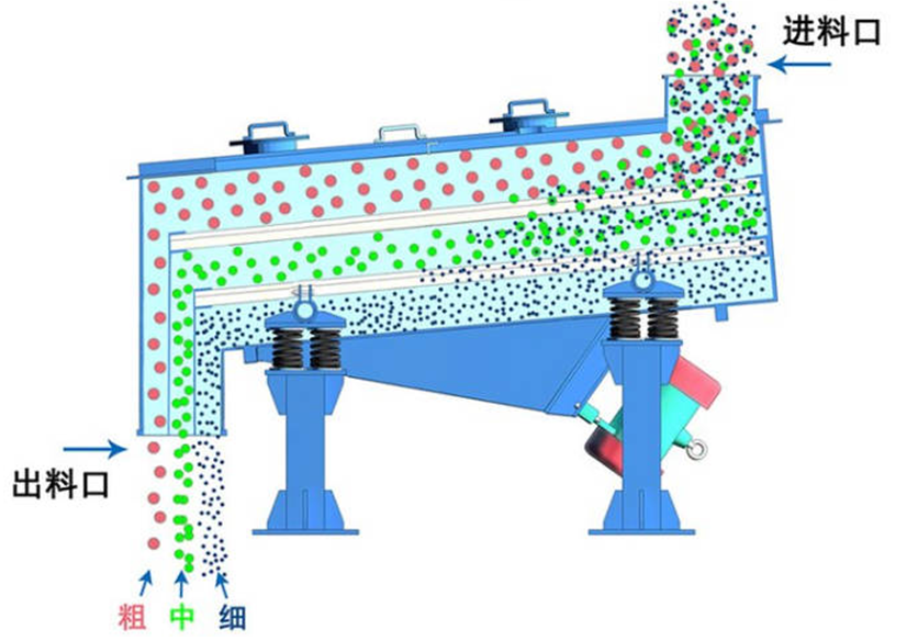 直線振動篩:結(jié)構(gòu)以篩箱為主體,內(nèi)置單層或多層篩網(wǎng)。其核心動力來自兩臺同步反向旋轉(zhuǎn)的振動電機,產(chǎn)生直線激振力。設備通過減振彈簧支撐于底座,以隔離振動。結(jié)構(gòu)堅固,適合大產(chǎn)量連續(xù)作業(yè)。