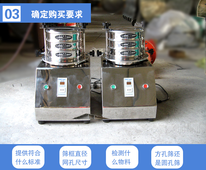 工廠內部檢測:一般的物料檢測使用試驗分樣篩就可以,標準試驗篩和試驗分樣篩的主要區(qū)別就在于網(wǎng)孔是不是符合標準。試驗分樣篩的價格少比標準試驗篩便宜一點。